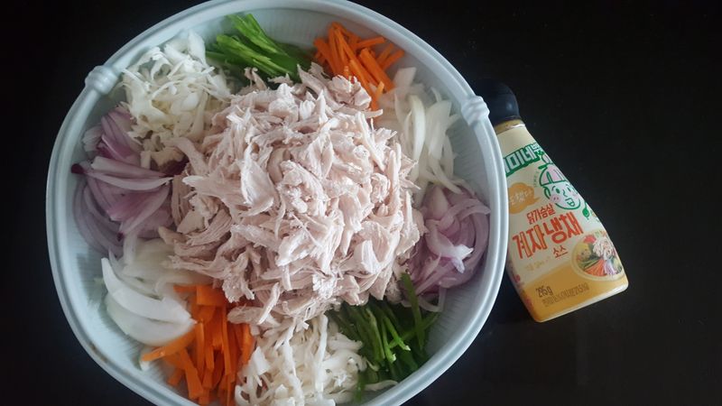 맛있는 것도 먹고 싶고 다이어트도 신경쓰는 나를 위한 요리인 닭가슴살 냉채 세미네부엌 닭가슴살 겨자 냉채소스만 있으면 닭가슴살과 집에 있는 채소로 멋진 요리 완성되요.