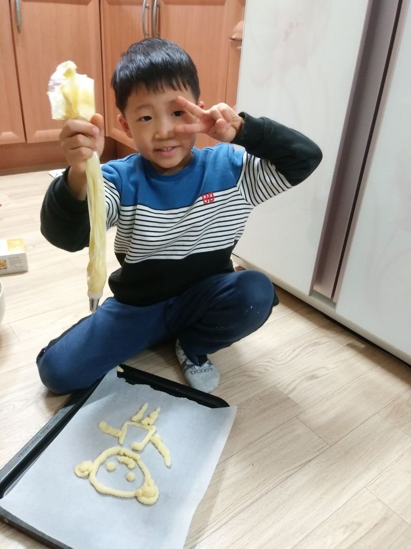 아들과 도전해본 베이킹입니다 엄마도 처음 아이도 처음이라 서툴었지만 세앙 최고 맛있는 쿠키였습니다^*^