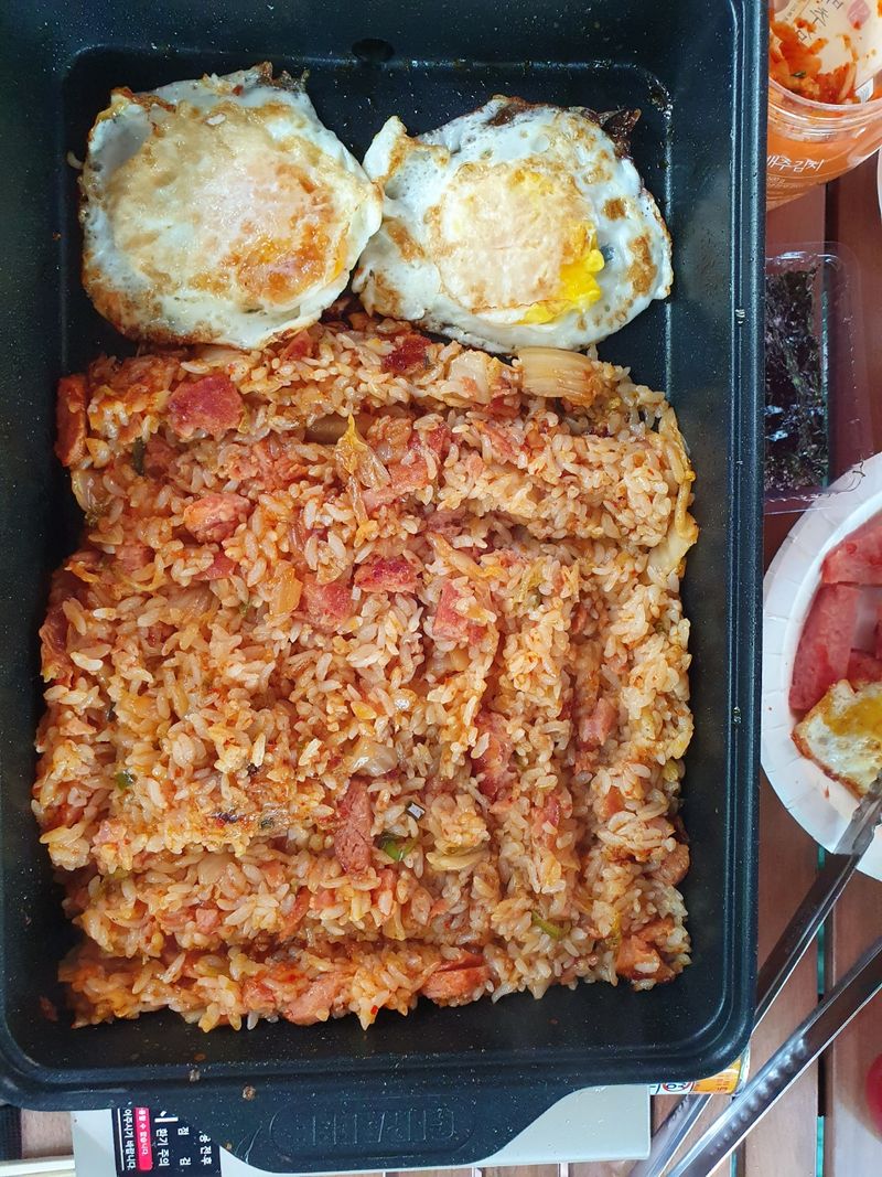 캠핑장에서 아이들과 함께 먹은 김치와 스팸과 쌈장을 볶아서 만든 김치볶음밥♡ 너무너무 맛있었어용!!