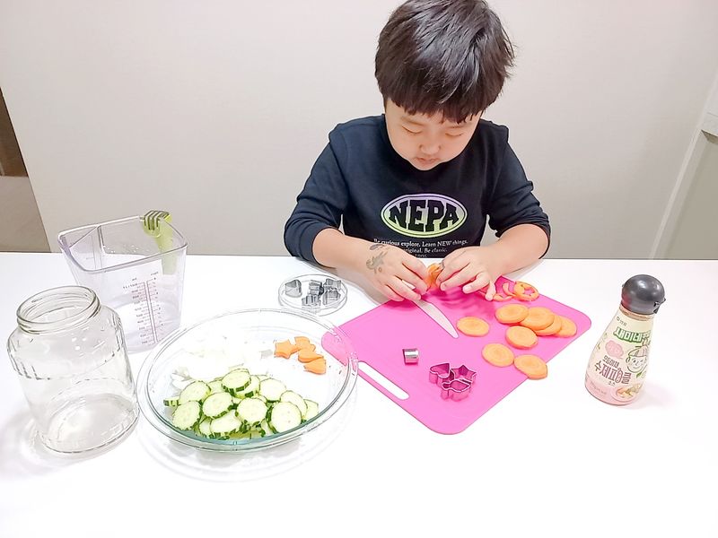 아들과 함께 새미네부엌 모듬야채수제피클소스로 피클을 만들었어요^^