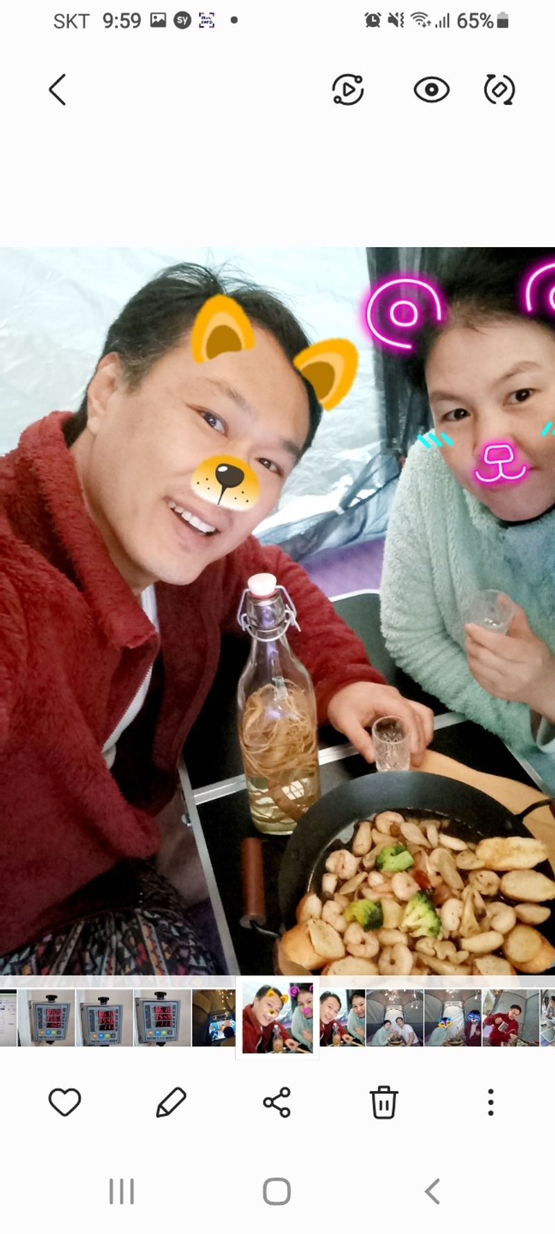코로나가 길어지고 회사를 관두고 이직준비하는 2년 너무 혹독한 집콕생활에 힘든시기 1주일 집콕캠핑을 했다 텐트를 펼쳐 텐트안에서 자고 영화도 보고 휴대폰도하고 음악도 들으며 라면,비빔밥.볶음밥.부대찌개, 김치찌개, 커피마시기 그리고 제일 추억에 남는 깜바스요리에 인삼주를 개봉했다