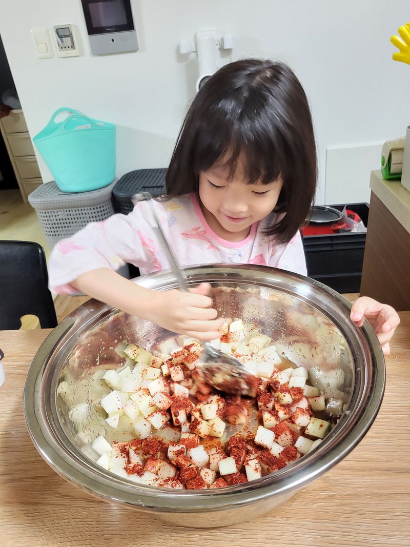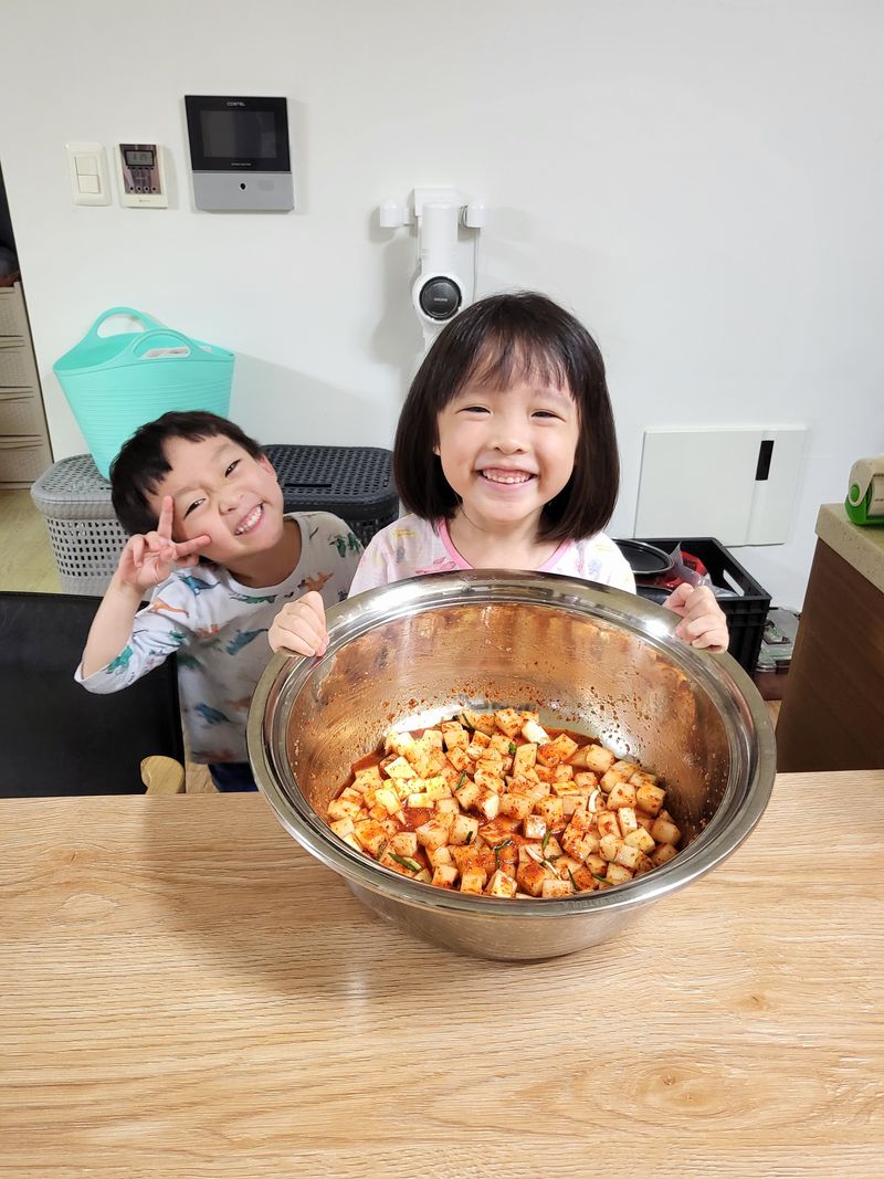 맛있는 추억을 그리다에서 새미상을 수상하여 받은 선물꾸러미로 김치3종세트를 만들며 알찬 주말을 보내는 아이들이에요~^^