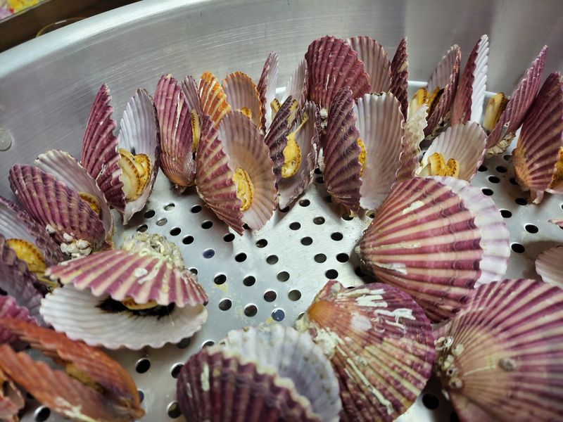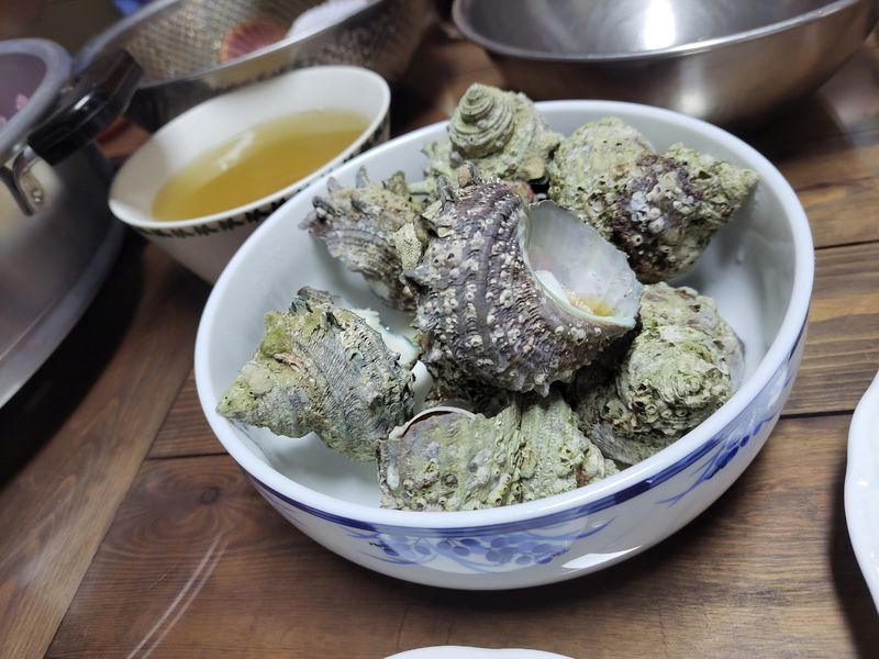 그리고 가리비와 뿔소라를 잘 찌고 삶아줬어요!