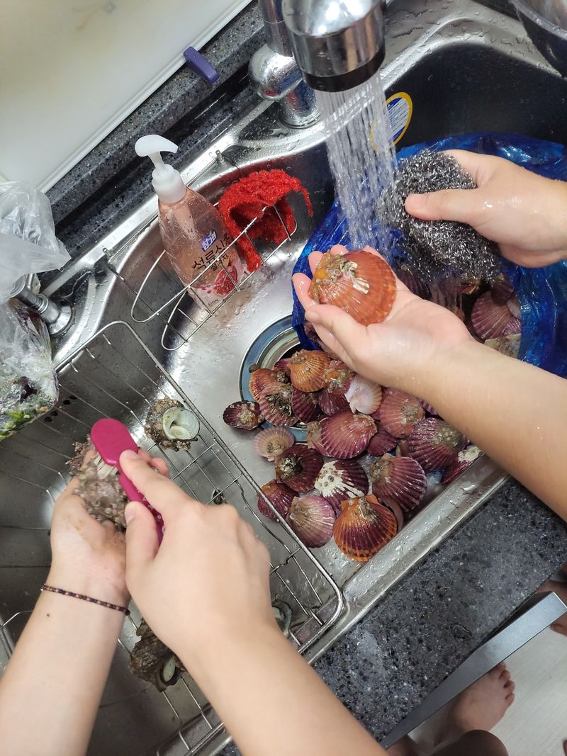 가리비를 깨끗하게 닦아주세요