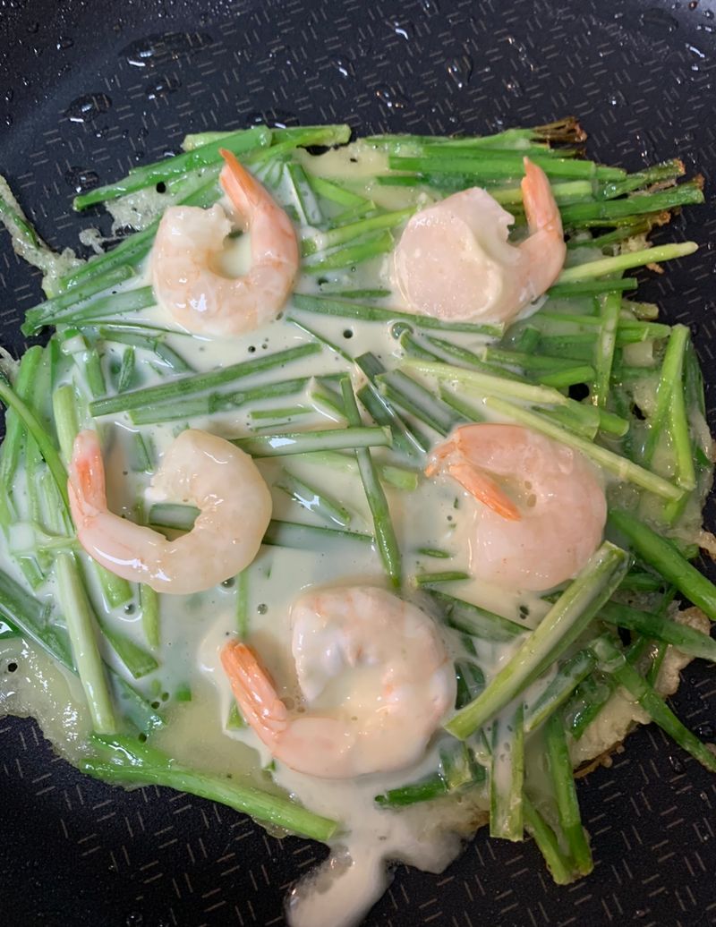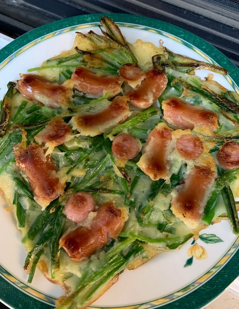 그런데 부추도 필요하다고 바닥에 깔고 과자처럼