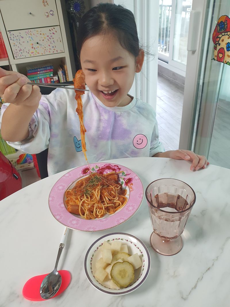 소시지와 스파게티로 재미있는 요리 완성