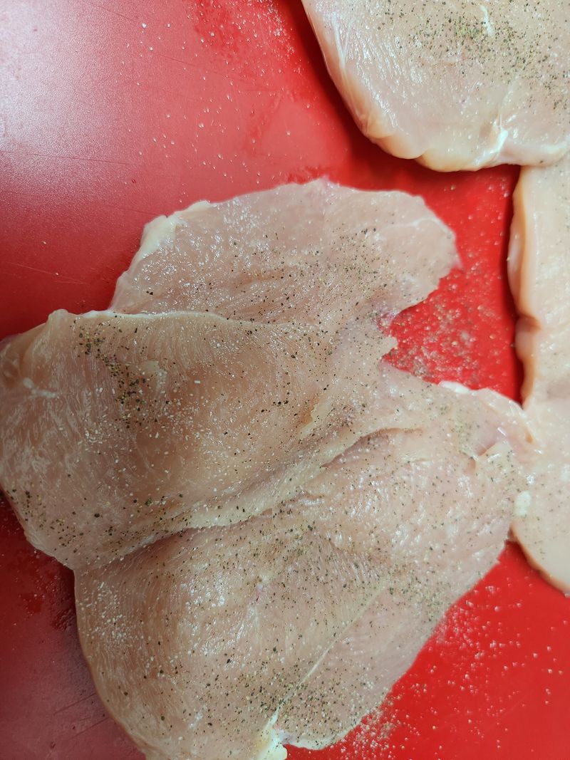 포크로 닭가슴살을 콕콕 찔러서 속까지 밑간을 하고