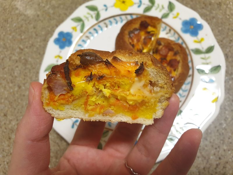 딸아이와 모닝빵으로 맛있는 계란 야채빵을 완성했어요~ 모닝빵 속을 잘~ 파서! 평소에 잘 먹지 않는 당근, 치즈, 야채 빵속에 숨기고ㅎ 달걀노른자 쏙~ 연두와 올리브를 쉐킷쉐킷 위에 뿌려주니 풍미가득 계란빵 완성♡ 즐거운 요리 시간이었어요~! 편식해결♡