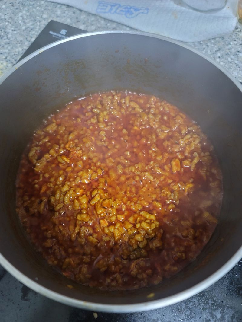 5. 자작하게 됬을때 쌀뜨물 조금 넣고 타지않게 볶아요