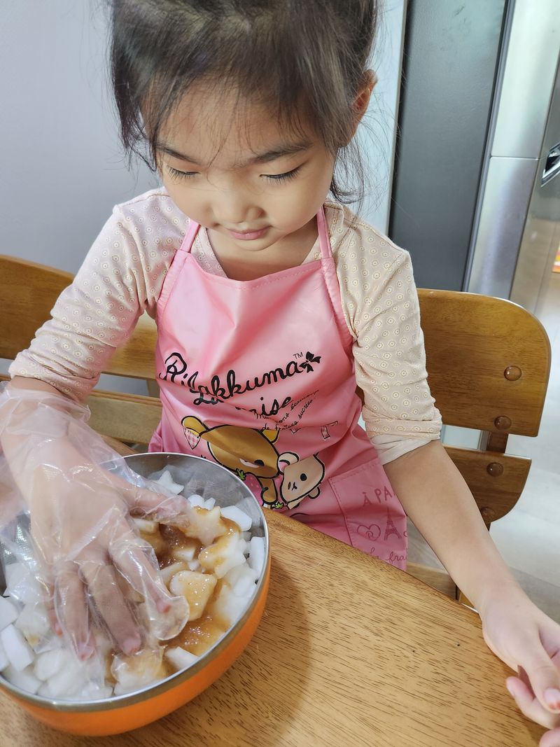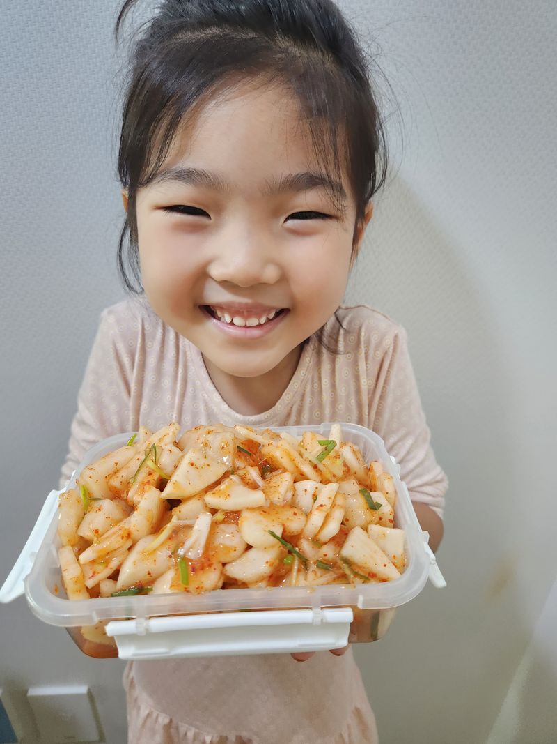 저희집 7살 첫째딸은 김치를 안좋아하는데 새미네부엌 덕분에 이제 김치 잘먹을것같아요*^^* 무도 하트, 별 모양틀로 찍어주며 재밌고 예쁘게 만들고~ 새미네부엌 깍두기 소스도 넣고 스스로 버무리기~~ 매운거 싫어하는 딸이 직접 고춧가루까지 투하!!!ㅎㅎㅎ 내가 만든 깍두기라며 너무 뿌듯해하고 좋아하네요. 할머니한테도 맛 보여주고 싶다고 따로 조금 담았습니다.*^^*