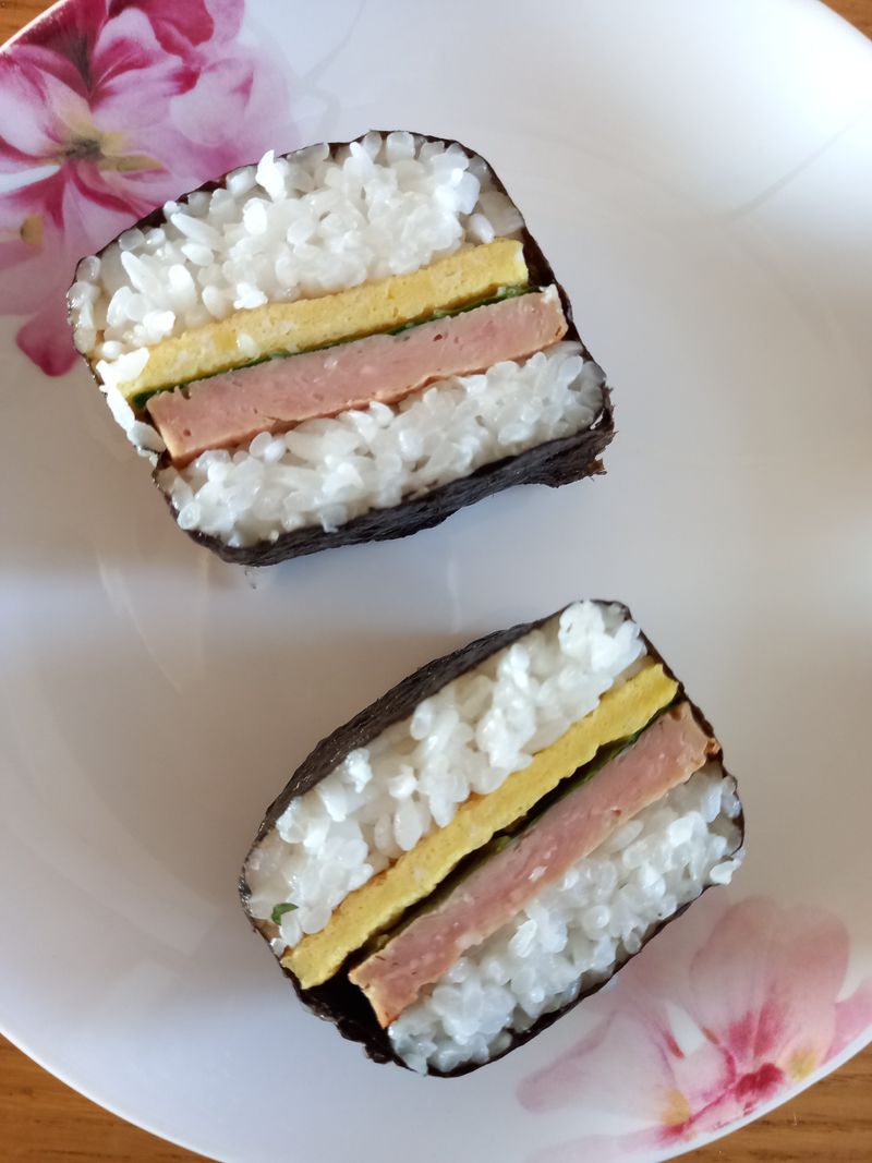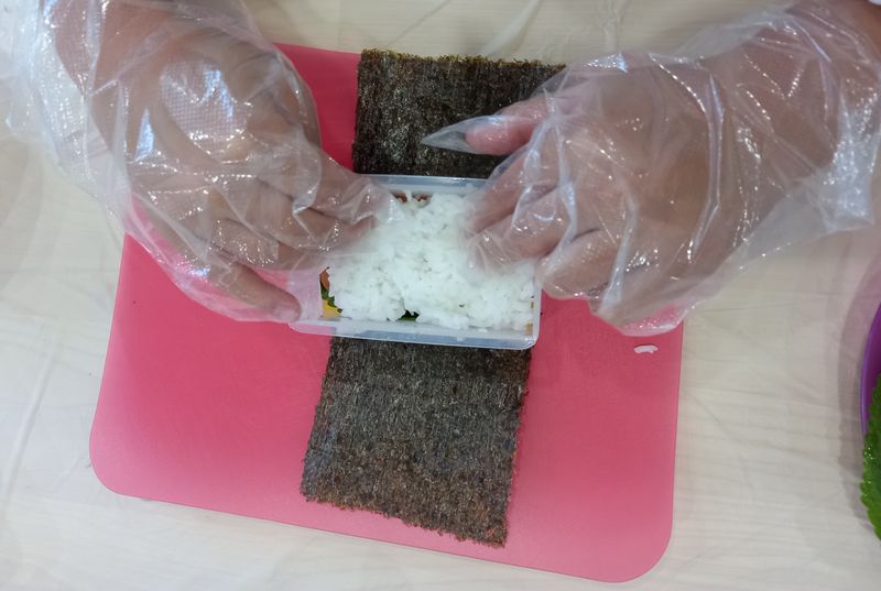 무스비 만들기~ 아이와 음식재료로 놀아보기도 하고 씻고 손질하면서 재료와 친해지면서 잘 먹지 않던 깻잎도 잘라서 넣어봤어요 밥을 꾹꾹 누르며 촉감놀이까지~~ 너무 맛있게 완성된 무스비!! 즐거운 시간이었습니다