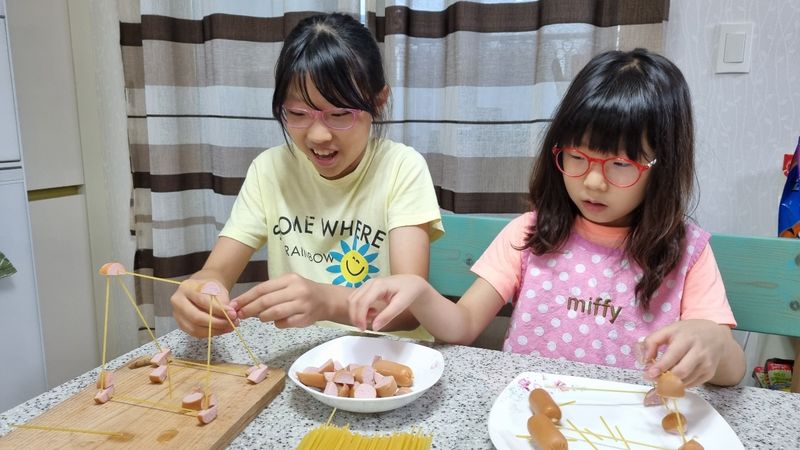 아이들과 함께 소시지 파스타 만들었어요^^