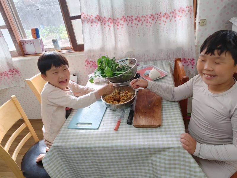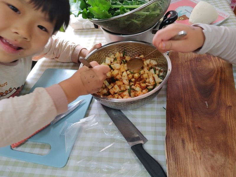 직접 키운 재료를 이용하고 새미네부엌 나도했다깍두기를 이용하여 만들었어요