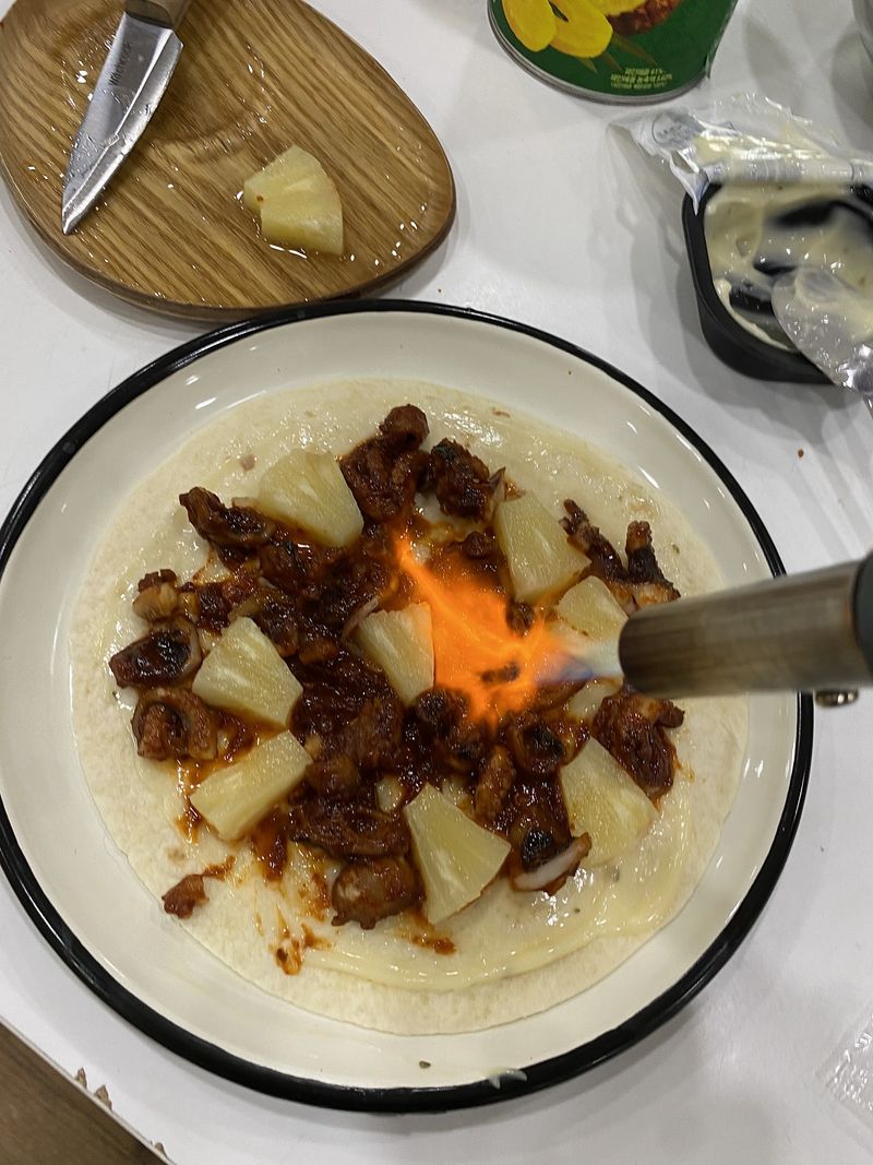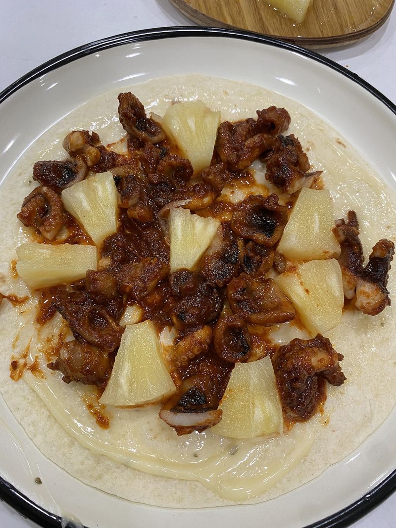 거창한 요리는 아니지만 간편하게 캠핑에서도 홈핑에서도 즐길수 있는 [쭈꾸미 하와이안피자] 와 [쭈꾸미 불닭/짜파쌈] 쭈꾸미를 먼저 지글지글 익혀주고요~. tip.쭈꾸미 쌈을 만들기 위해 다리는 자르지 않고 모양 유지해주세요. 또띠아 한장에 마요네즈 디핑소스를 펴발라 주세요. 쌈으로 먹을 붉닭볶음면과 짜파게티도 완성하고, 맛나게 볶아낸 쭈꾸미를 적당한 크기로 잘라 또띠아 위에 올려주시고 (양념도 같이 펴발라 주시면 좋아요.) 적당히 자른 파인애플을 쭈꾸미 사이사이에 고고! 토치로 파인애플도 익혀주고 쭈꾸미에 불향을 입혀입혀~ 칙칙!! 모짜렐라 치즈를 듬뿍듬뿍 뿌려주세요~ 세팅하고나서 먹기직전에 토치로 치즈를 녹여주어요~파인애플이 쭈꾸미의 매운맛도 잡아주고~ 불향도 굿굿!! 월남쌈~ 쭈꾸미를 넣어 색다르게 만들어 봤어요. 쭈꾸미 다리모양을 그대로 살려 볶아낸 쭈꾸미를 먼저 올리고 한입정도 양의 면을 쭈꾸미 위에 올려주시고 오른쪽- 왼쪽-위-아래 접어주세요.(순서 바뀌어도 무관ㅋㅋㅋㅋ) 비쥬얼 너무 좋고.. 이제 맛있게 먹어주면 됩니다아!!! 쭈꾸미 ~ 불닭볶음면이랑 너무 잘어울리는 궁합이어요. 마시쒀마시쒀~~