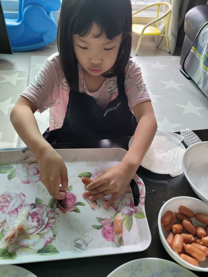 라이스페이퍼로 쏘세지 꼬지 만들어봤어요 요리하기는 언제든 즐거워요 ㅎㅎ