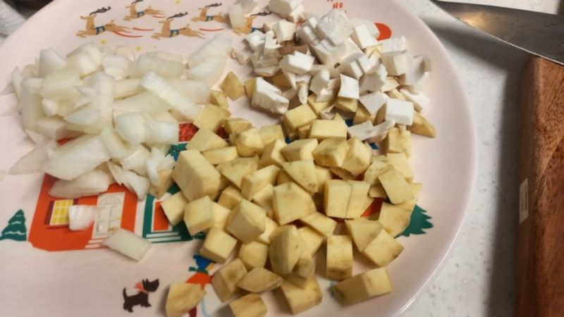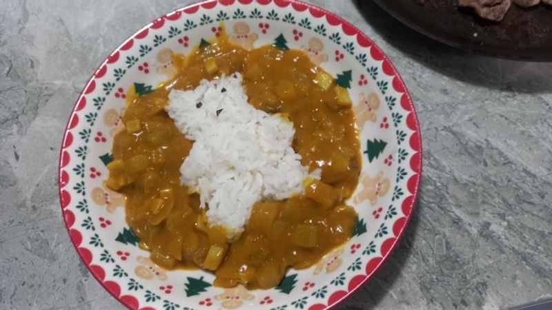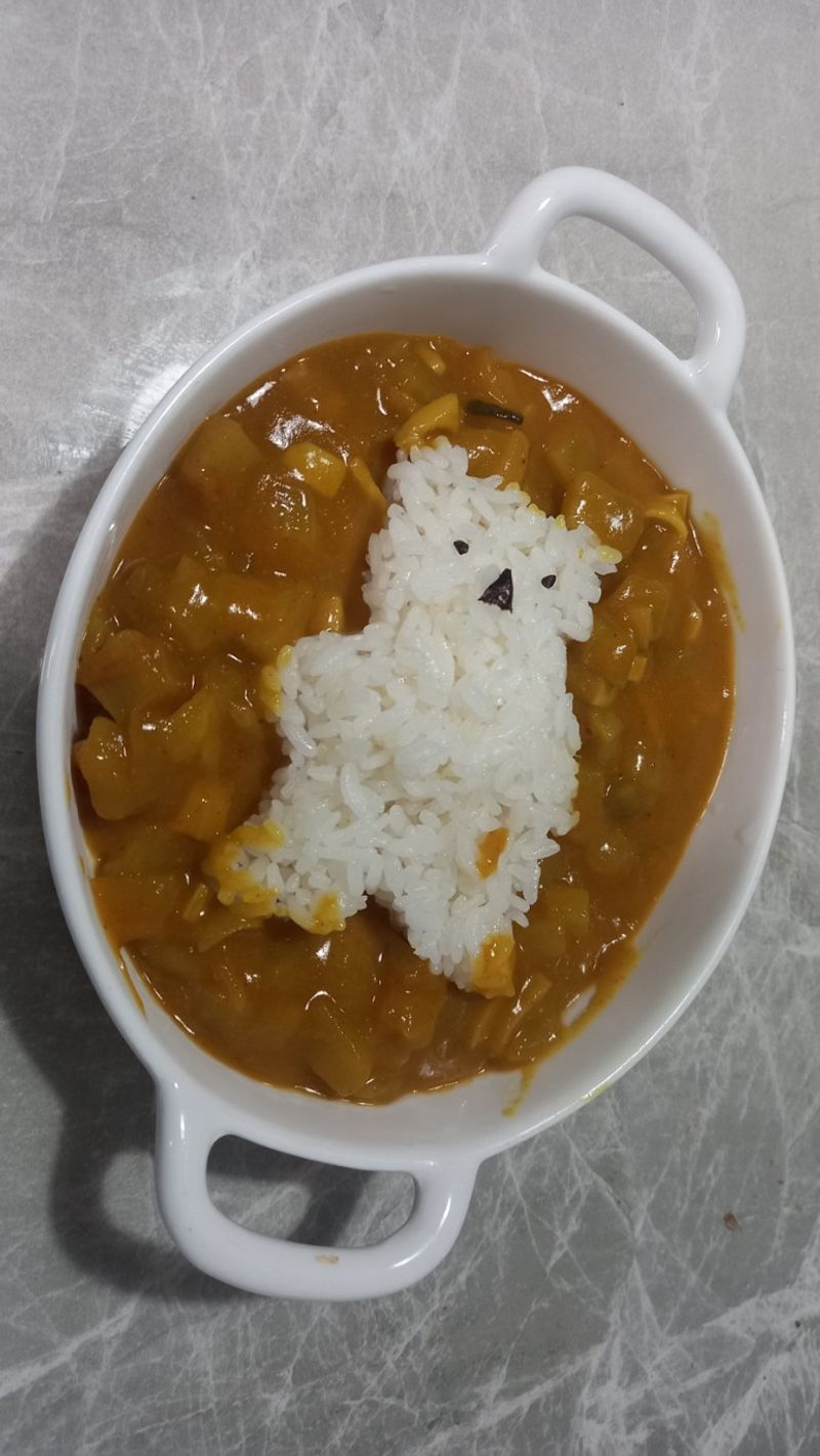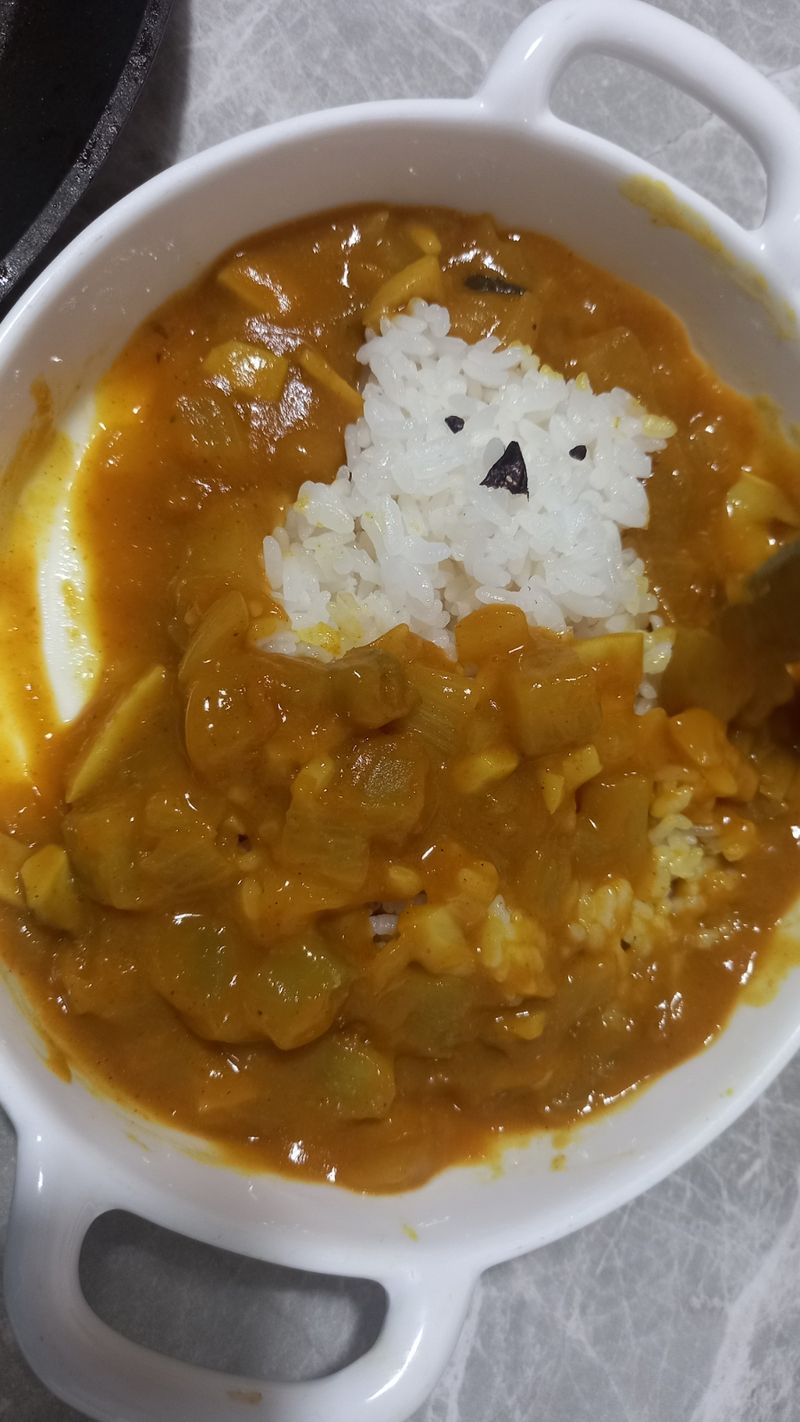 가족들이 별로 좋아하지 않는 고구마와 버섯을 활용해서 만든 곰돌이 모양의 카레 입니다