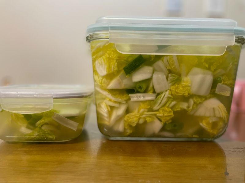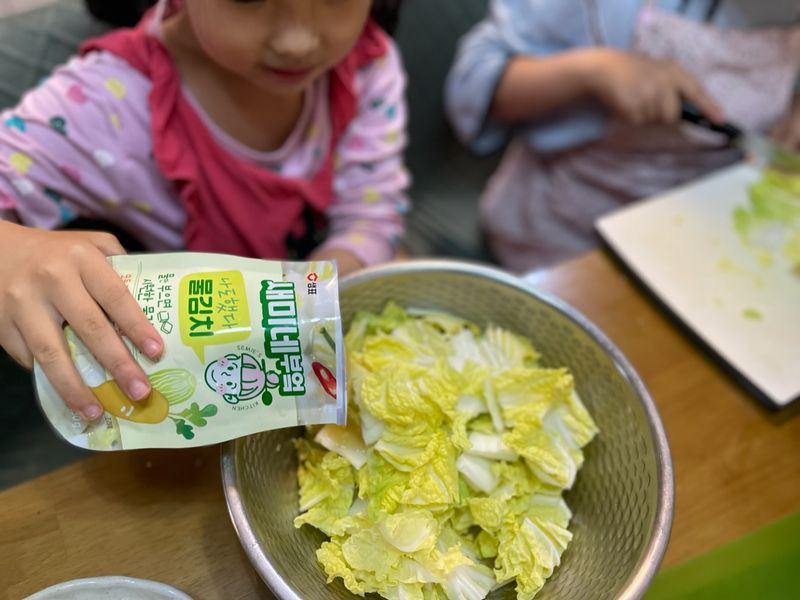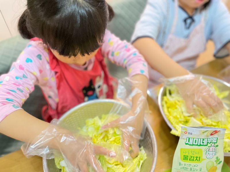 이게 된다고? 싶었는데 새미네 물김치 양념1팩이면 정말 물김치가 되더라구요 아이들과 함께 알배추 한통을 사서 씻고 자르고 간편하게 양념팩만 쏟아 부어 버물여주면 이미 냄새부터 끝나요 숙성하기 전부터 아이들이 먹어보고 싶다고 난리입니다 함께 하는 재미도 있고 본인들이 직접 만들었으니 얼마나 잘먹게요~ 특히 국물을 너무 좋아합니다 ” 엄마 국물 리필해줘요~“ 하고 시원하게 수저로 떠먹는 모습만 봐도 뿌듯라더라구요~ 시판 김치도 좋겠지만 직접 싱싱한 배추 사다 함께 만드니 좋은 추억거리와 함께 김치 잘 먹는 아이로 성장할거같아요~!! 알배추 하나에 양념한팩뿐인데 이렇게 넉넉하게 한통 반이나 나와서 당분간 김치걱정 없습니다^^ 좋은 추억 선물해 주셔서 감사해요 챌린지 도전이 아니였다면 함께 만들 생각도안했을텐데 시간도 잘가고 뿌듯한 결과물까지 너무 즐거운 시간이였습니다^^ 역시 요리 혁명!!