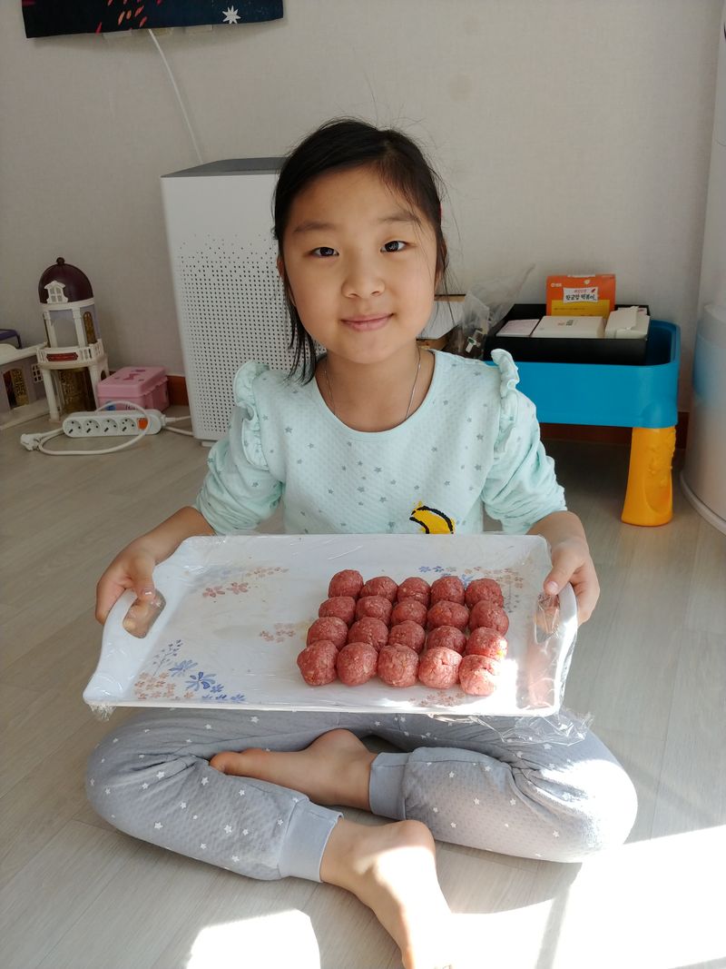초3아이가 직접 미트볼을 조물조물 뭉쳐서 만들었어요^^