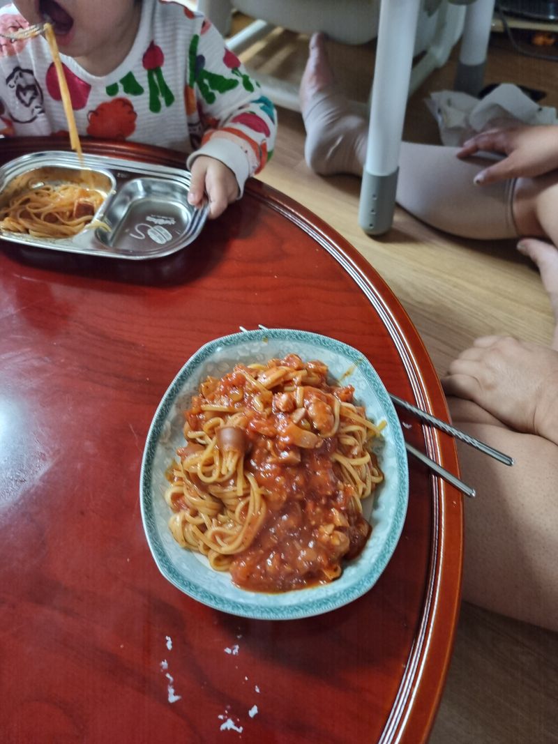 한시간넘게 파스타면으로 놀아서 오늘 요리놀이도 성공이네요