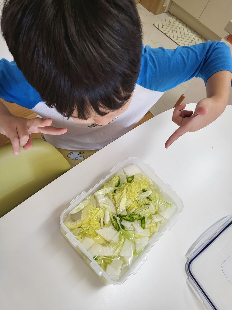 국은 안먹는 아들이지만 물김치는 빠지지않고 식탁에 올려요! 새미네부엌 나도했다 물김치 덕에 너무나 간편하게 물김치 만들어요♡ 우리집 밥상에 빠질수 없는 물김치! 비법은 새미네부엌 입니다♡ 아들과 함께 만들며 즐거운 추억거리 하나 또 쌓였네요 감사합니당