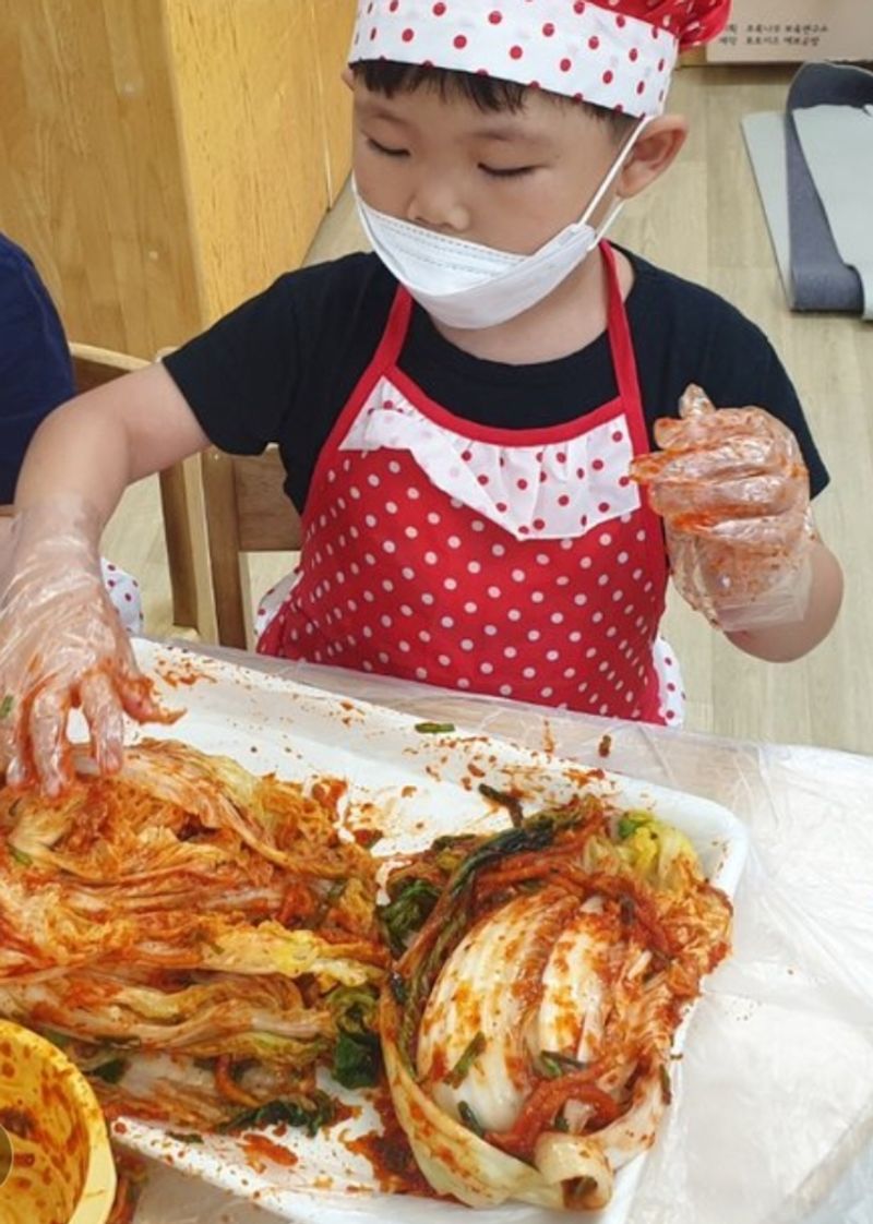 싱싱한 배추와 함깨 버무리고버무려서 김치 완성^^ 장금이가 울고갈 맛잇는 김치♡ 너는 매워서 못먹지만, 엄마는 라면과 환상 조합으로 맛나게 먹을게!! #맛있는추억을그리다 #함께요리챌린지