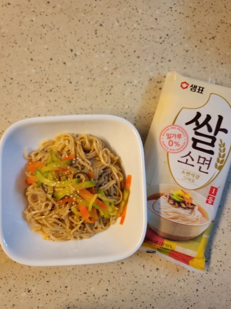 아이는 간장,참기름만 넣고 비벼달라해서 쌀소면 삶아 해주니 한그릇 뚝딱