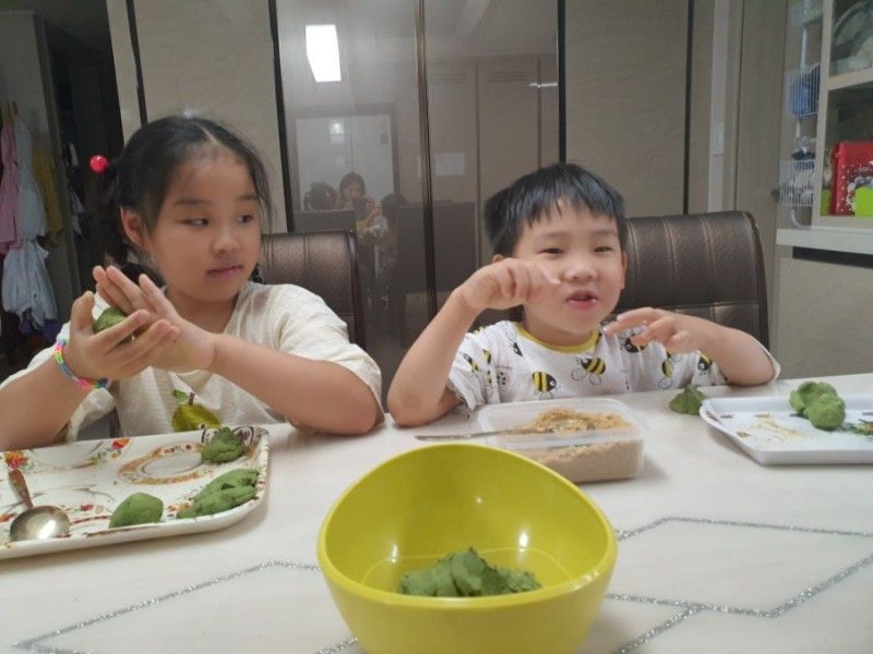 저희 아이들은 흰 송편보다 쑥을 좋아하여 직접 뜯은 쑥으로 만든 쑥송편을 만들기로 했습니다..