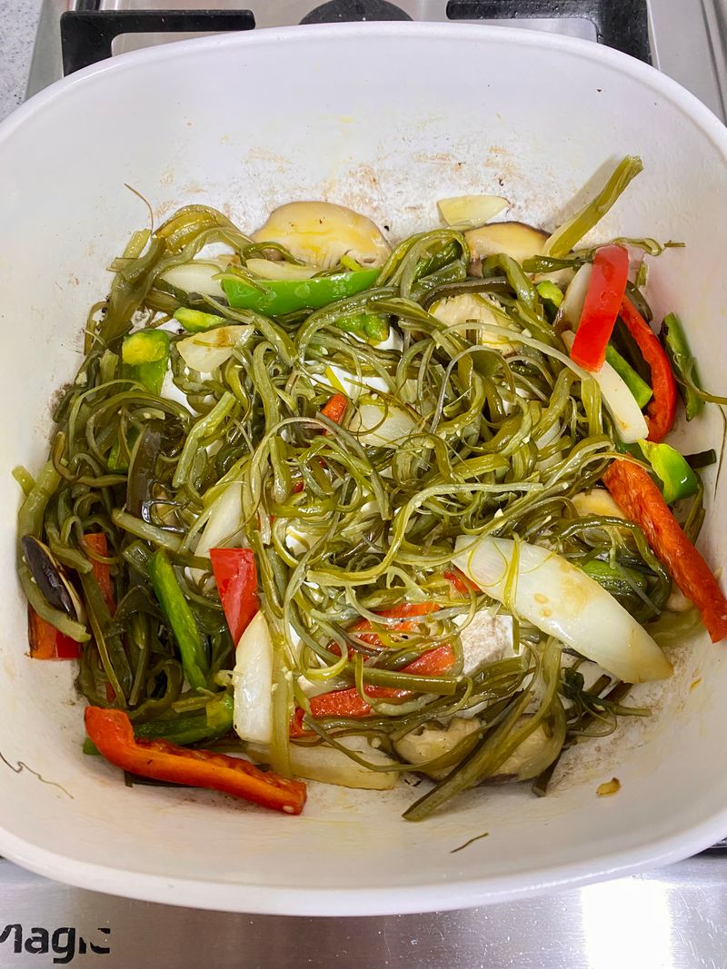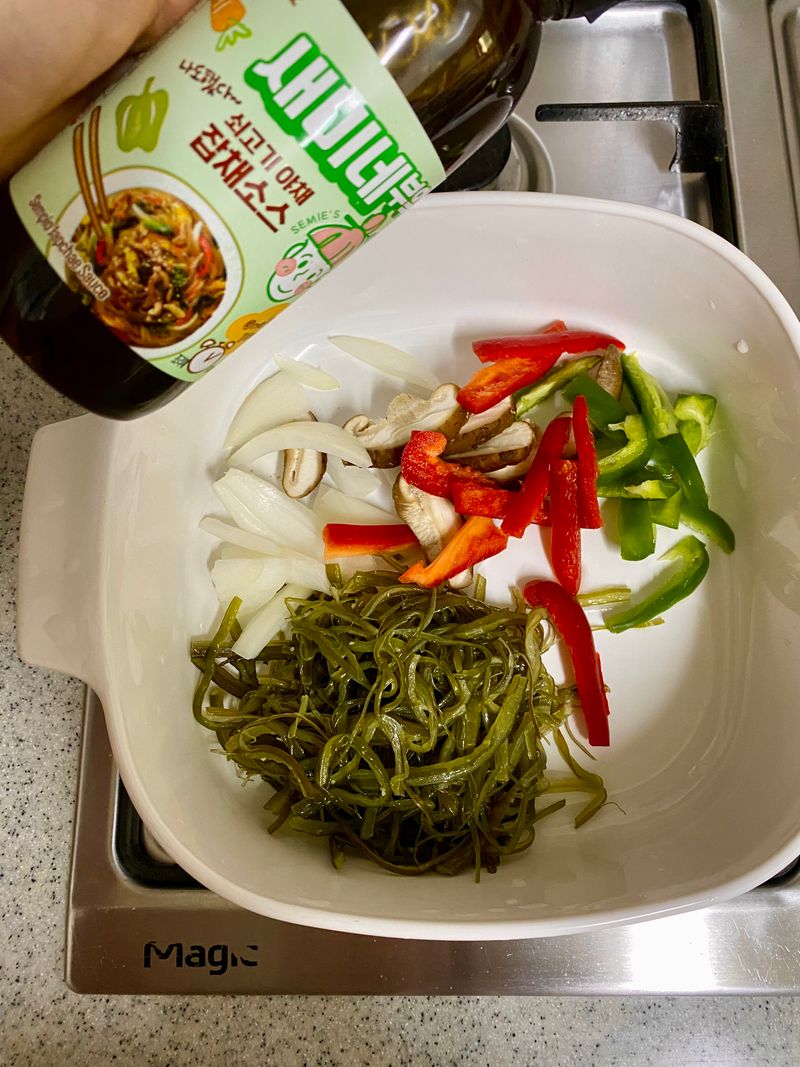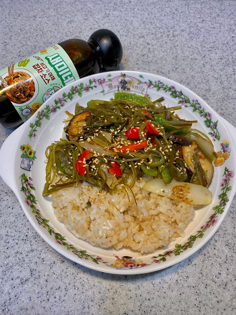 새미네요리법을 보고 잡채밥 처럼 만들어본 미역줄기덮밥 !