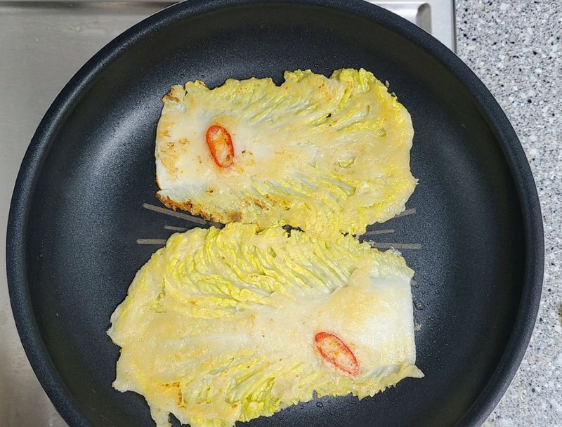 오랜만에 먹은 배추전~ 달달하니 맛있었습니다!