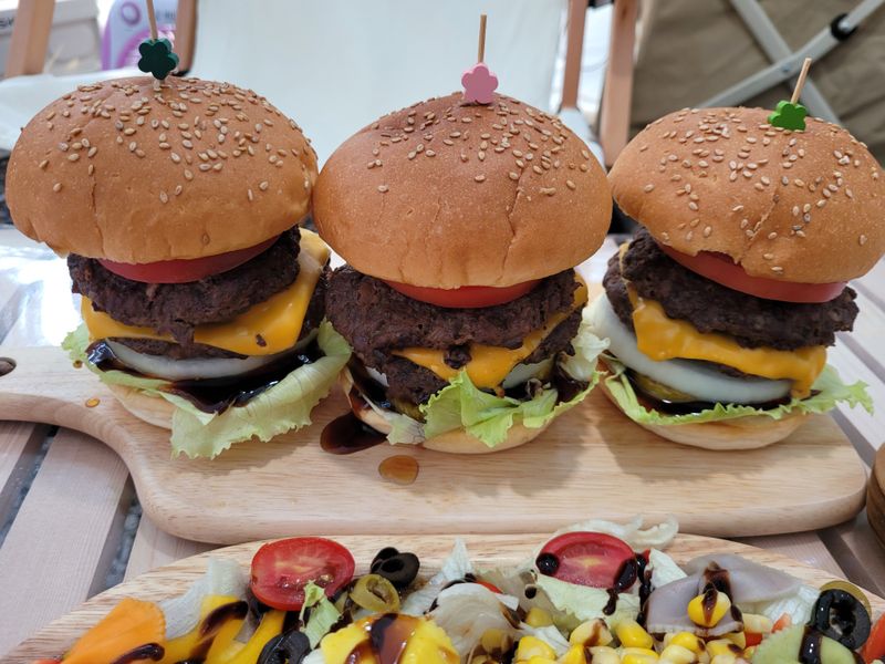 캠핑장 가서 수제버거를 만들어 먹었어용~