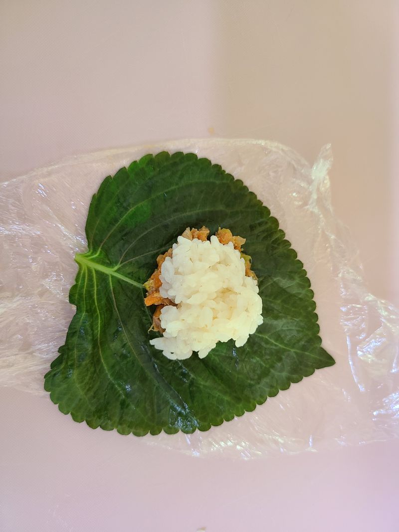 참치강된장 넣은 동글동글 깻잎쌈밥