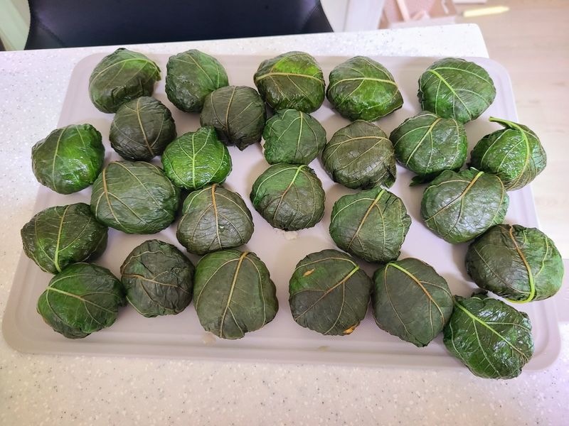 살짝 데친 깻잎에 된장소와 밥을 넣어서