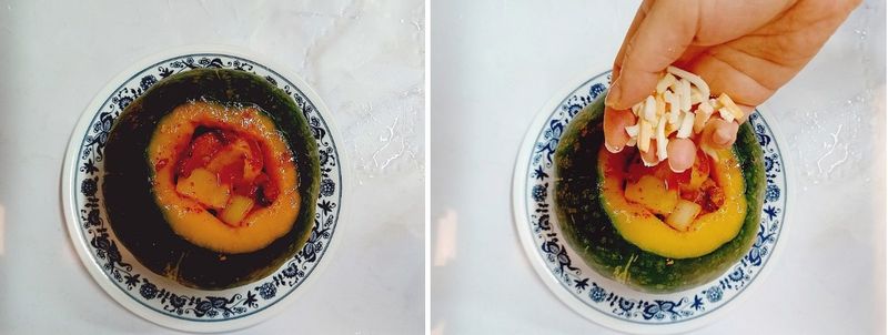 요즘 참 춥죠~추위를 많이 타서 그런지 진이 빠지고 그러네요 이럴때 보양식을 한번 먹어줘야 힘이 팍팍! 나죠^^ 단호박과 오리의 만남.달콤한 단호박 속에 야채와 오리를 품은 보양식이죠! 만들기도 쉬워요~ 단호박은 전자렌지에 3분 이상 돌려서 꼭지를 자르고 속을 파내주세요. 그리고 훈제오리고기에 홍.옐로우 파프리카1/2개.대파1개.양파1/4개. 간장1t.설탕1/2t.고춧가루1t을 넣고 양념이 고루 배도록만.. 푹 익히실 필요 없어요. 생고기가 아니라서 양념이 밸 정도로만 휘리릭 볶고 그것을 속을 파낸 단호박에 넣고 그다음 위에 치즈를 올려 주세요. 단호박을 전자렌지에 돌린거라서 에어프라이어에 넣고 180도 12분 정도 돌리시면 완성! 단호박 오리 치즈가 서로 어우러지니 요리색깔도 참 곱구요.. 맛은 두말하면 시어머니 잔소리죠^^