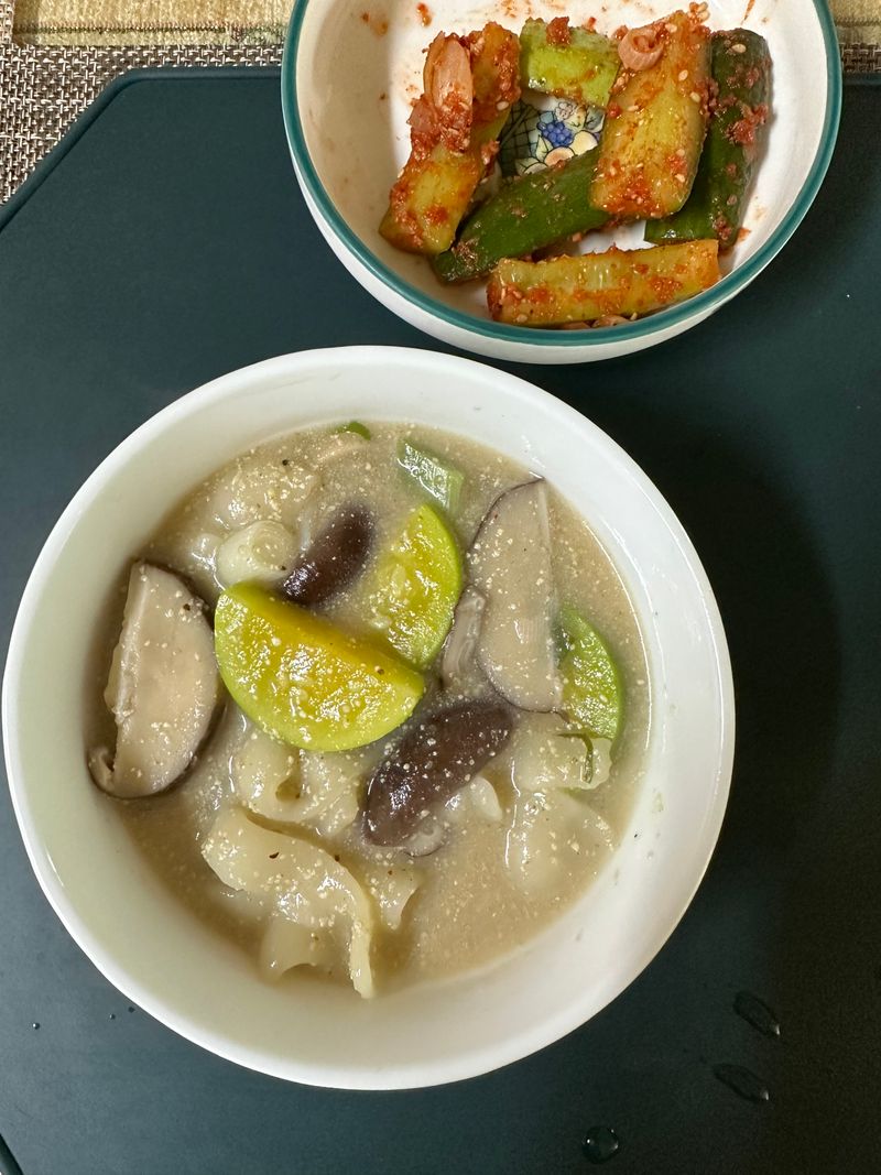 들깨가루 가득 든 수제비 뜨끈고소한 맛이 상상돼요😆