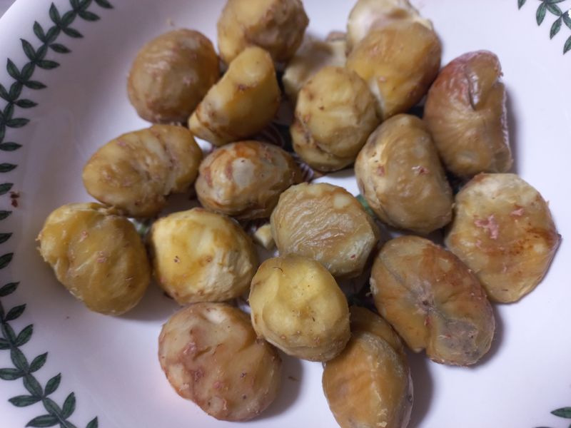 한번은 밤껍질 그대로 쪄보고 한번은 일일히 껍질까서 찐다음 겨울 또다른 제철 식재료 시금치와 함께 샐러드로 먹어봤어요~~맛나게 먹고 남은 건 엄청난ㅋㅋㅋ양의 껍질들과 제 손의 굳은살ㅠㅠㅋㅋㅋ