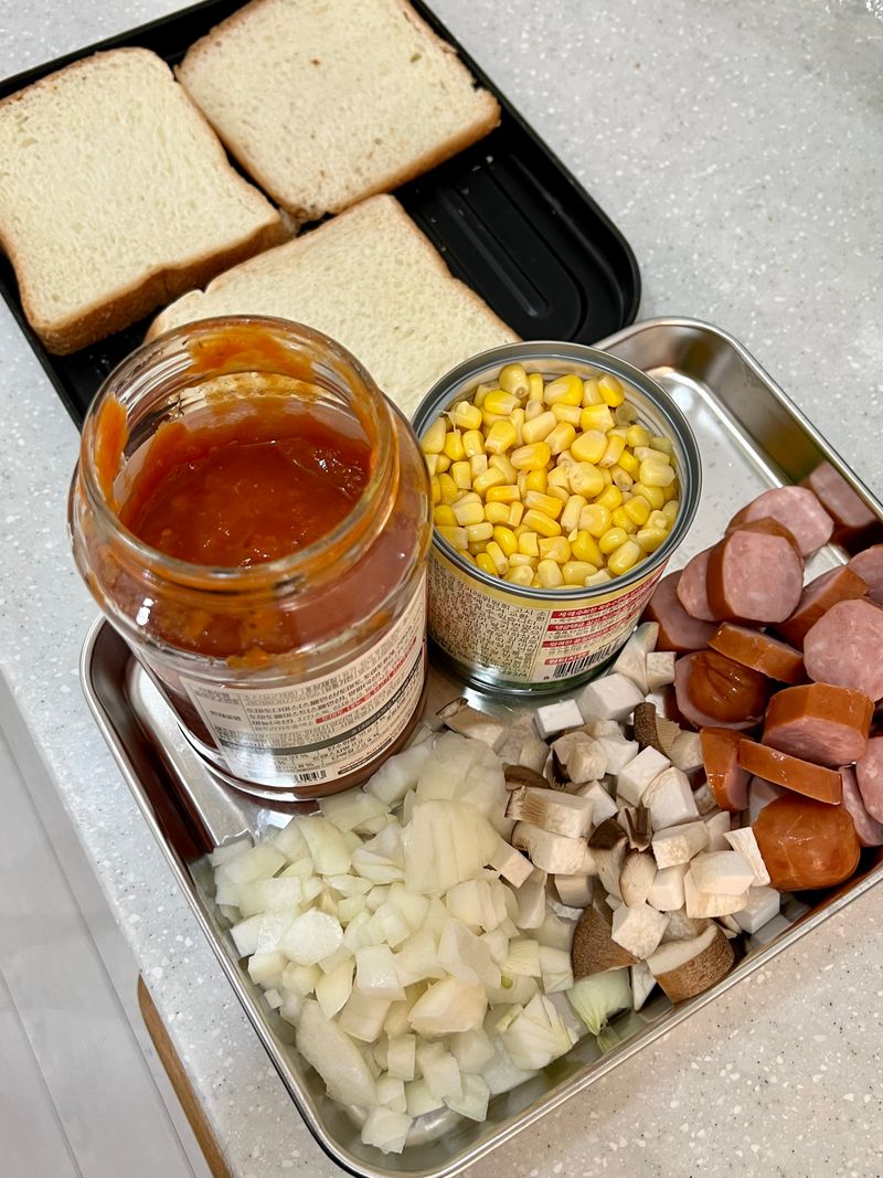 식빵에 햄이랑 옥수수 치즈 넣고~~