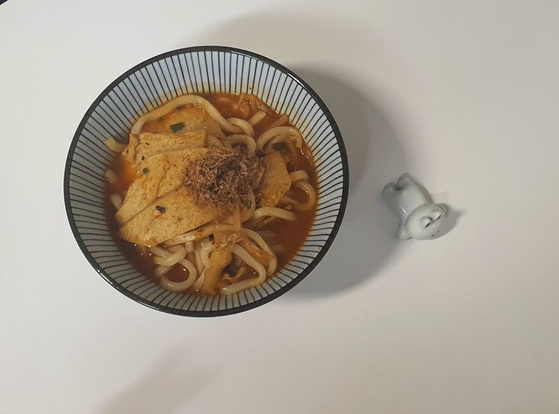 칼칼한 국물이 생각날 때 해 먹는 김치어묵우동 먹기 좋은 크기로 자른 김치와 어묵에 연두 한 스푼과 가락국수육수를 넣고 끓여주다가 가락국수면을 넣고 가락국수면이 풀어지면 간단하게 김치어묵우동 완성!!! 연두 청양초를 넣어서 더 칼칼하고 맛있답니다^-^