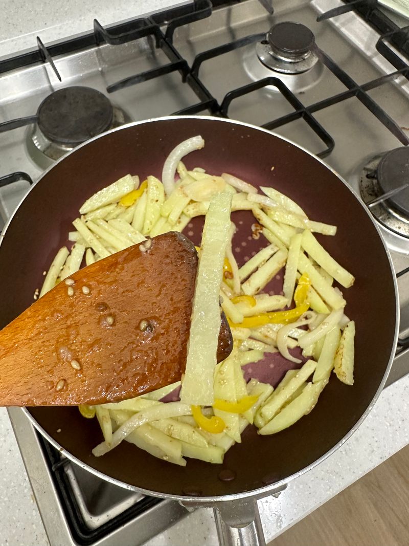 감자채의 두께가 얆으면 바삭하고..