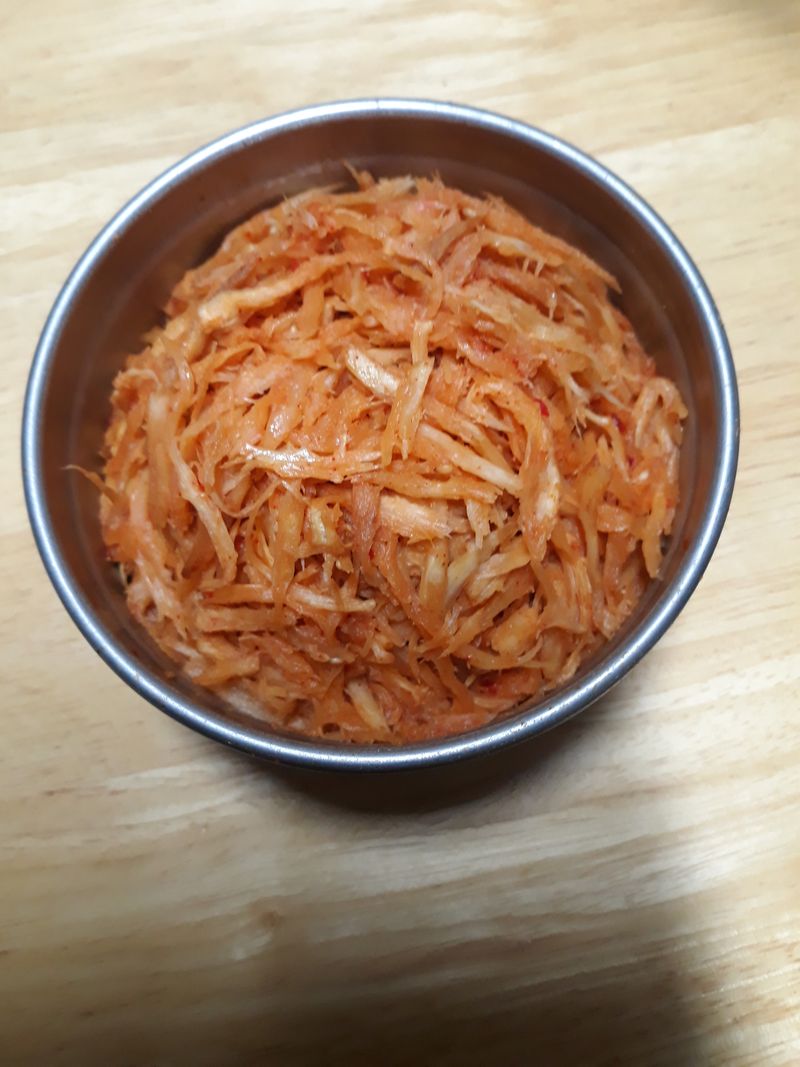 원래는 다진파 식초가 조금들어가요 저는 생략했어요 색다른 반찬이되고 비빔밥에도 넣어서 비벼서 먹으면 맛있어요~