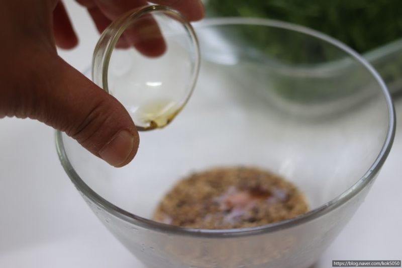 참기름과 깨소금을 넣어서 잘 섞어줍니다