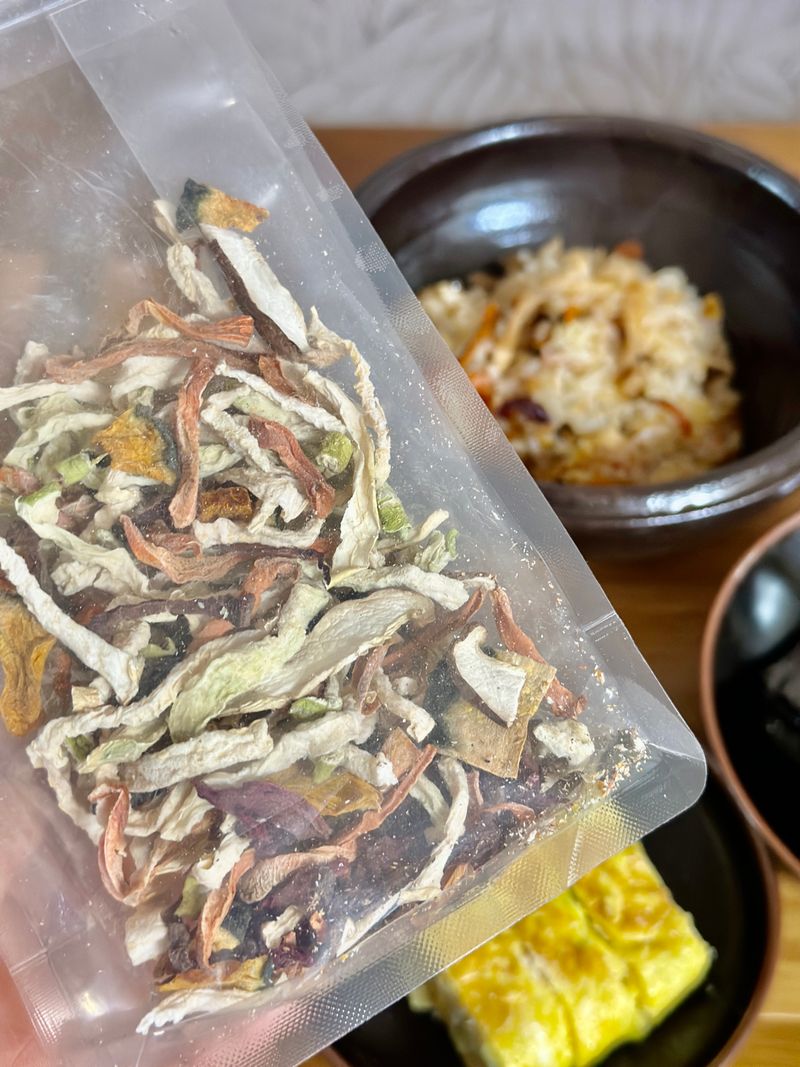 지난 가을에 당근, 비트 ,버섯, 단호박, 애호박을 건조시킨 건채소를 얻게 됐어요. 깨끗하게 손질하여 말린 것들이라 쌀을 씻어서 바로 넣어 밥을 했지요. 바쁜 출근길에 아침식사로 준비하기에 딱이었답니다. ㅎㅎㅎ 양념간장만 준비하면 든든한 한끼!! 꿀맛이네요!! 봄은 식탁으로 먼저 오는데.. 전 오늘 묵은 나물로 지난 가을을 만났습니다. ㅎㅎㅎ