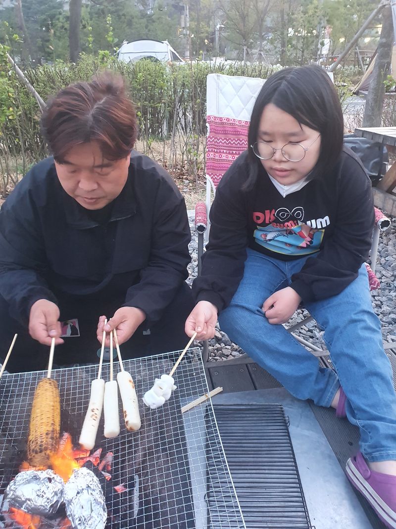 ㅋㅋㅋ 꼬치에 꽂아서 숯불에 구워먹는 재미가 또 있죠^^! 아이들도 너무 즐거웠겠어요~~