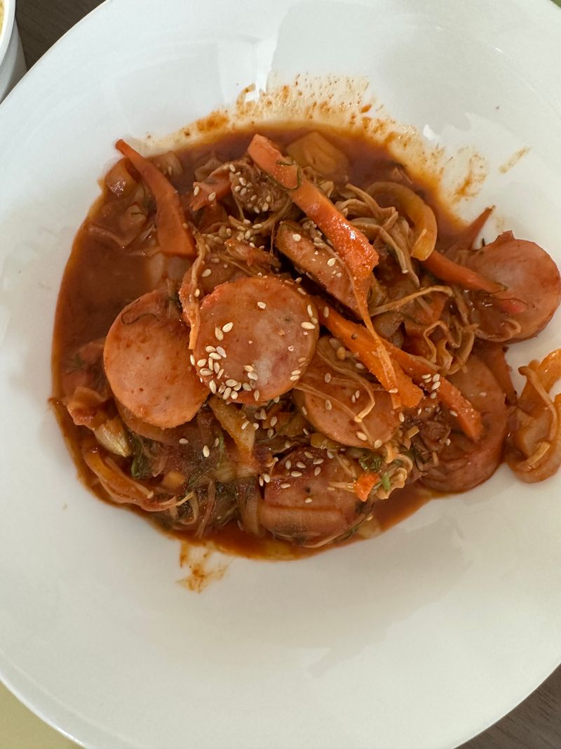 좀 더 예쁘게 담아볼걸~ 소세지랑 야채랑 볶았더니 쏘야가 되었어요