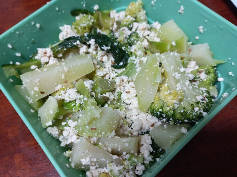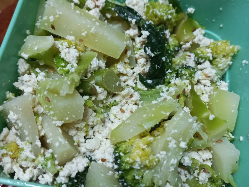 브로콜리를 조각조각 잘라서 두부에 액젓 한스푼, 간장한스푼, 참기름 쪼르르 붓고 깨소금 솔솔 뿌려서 무치면 맛도리 반찬 완성~