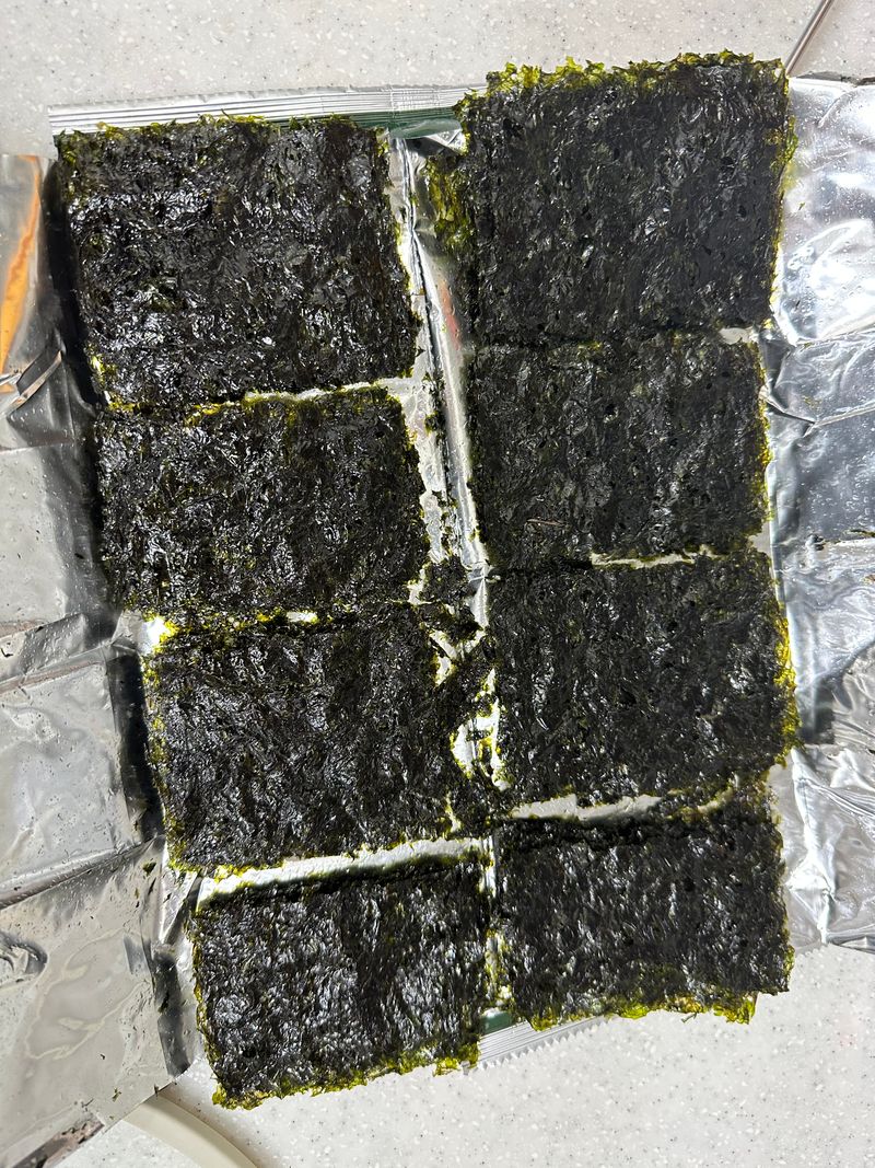 가위를 사용하지 않고 살짝 바람빠지게 봉지를 연 후에 손 날을 이용해 쓱쓱 문지르면 바로 김이 잘립니다
