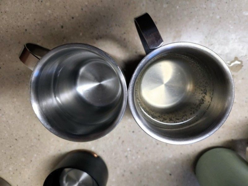 ✔️스테인리스컵에 과탄산소다 1스푼ㅡ2스푼 넣는다.