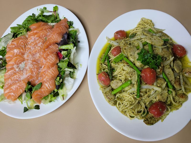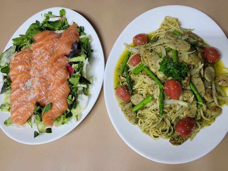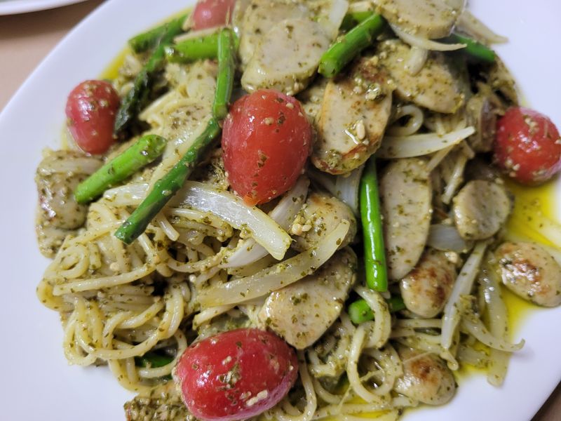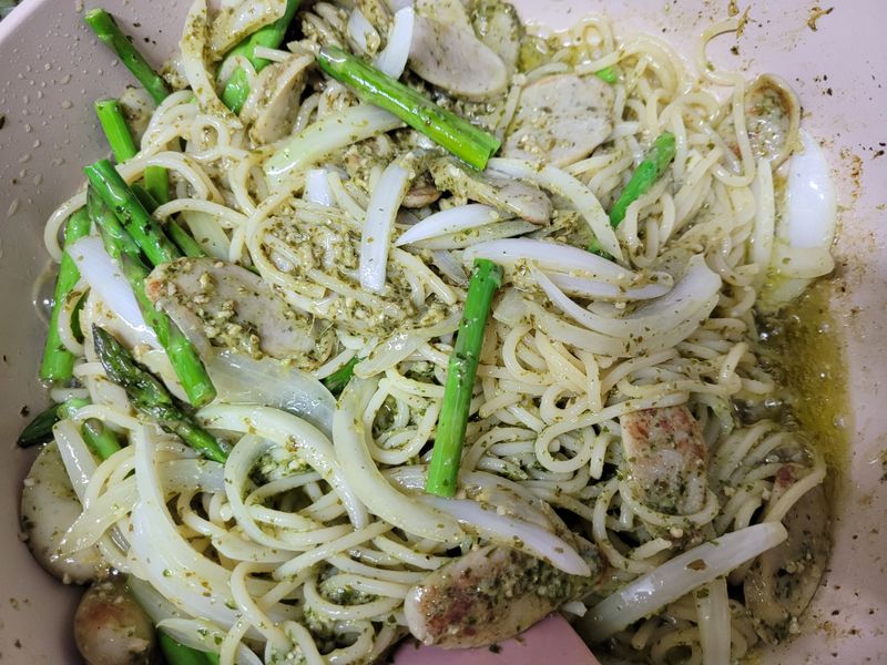 주말인데도 일하고 온 신랑과 월요일 중간고사 앞둔 아들을 위해 바질파스타랑 연어샐러드를 만들어주었네요. 소세지와 지난주 깜박했던 아스파라거스 양파랑 몇개 남아있던 방토 껍질 벗겨서 맛나게 만들어 먹었네요. 항상 맛나게 먹어주는 우리가족에게 고맙네요. 주말 가족과함께 맛난거 많이드시구 햄뻑~❤️하게 보내세용~😊