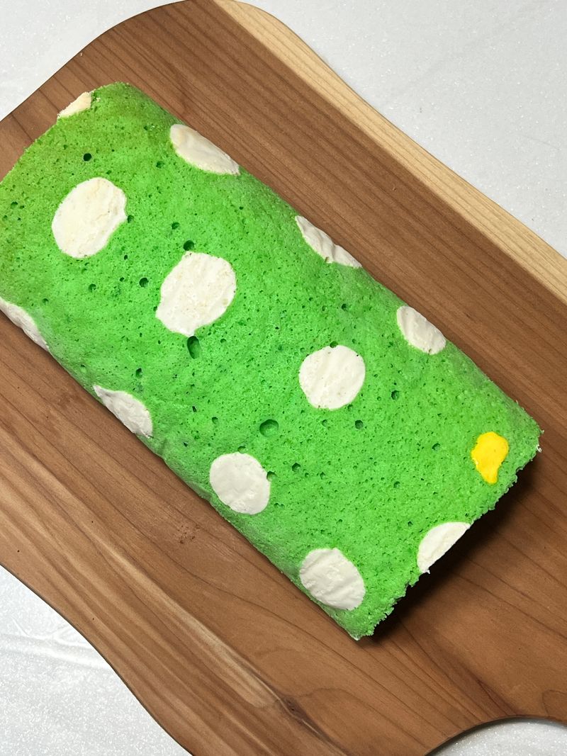 베이킹에 요새 빠져있는데, 롤케잌에 처음 도전해봤어요! 점박이 모양을 원한 건 아니었지만.. 그래도 예쁘게 나와서 다행입니다 ㅎㅎ 예쁘게 잘라 가족에게 맛있게 선물했어요오 💚
