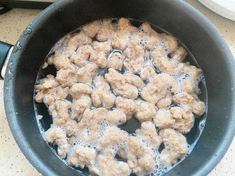 파기름낸후 물에 불린 콩고기를 물기를 짝 쫘준뒤에