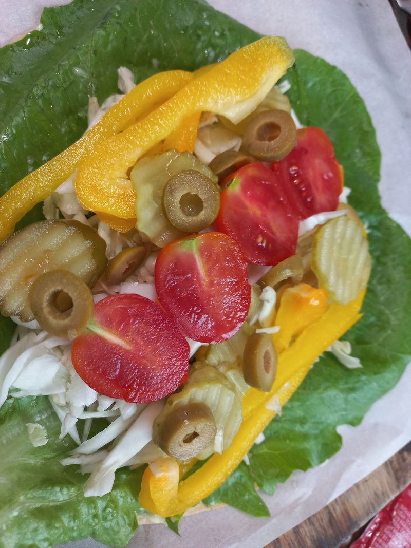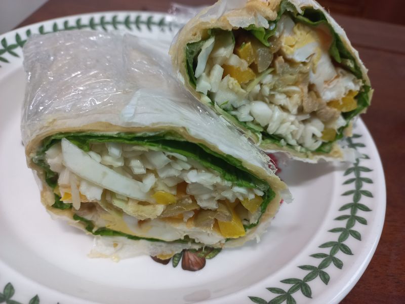또띠아 보들보들하게 구워서 상추,양배추,파프리카에 방울토마토~~올리브와 피클도 올리고 계란후라이에 마지막으로 스리라차 마요소스까지!